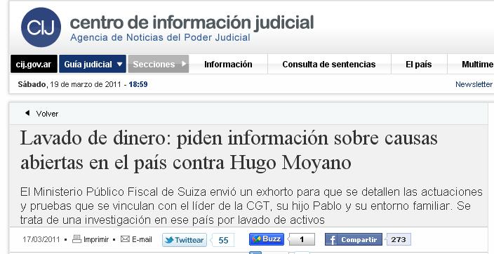 Fue el Centro de Información Judicial, órgano de difusión de prensa de la Corte Suprema de Justicia –a cargo de María Burdin, ex empleada del empresario Daniel Hadad, enfrentado abiertamente a Moyano por la licitación del Club Comunicaciones–, el que, según todo indica, introdujo los nombres del titular de la CGT y su hijo Pablo, cuando en verdad la consulta era sobre “personas desconocidas”. En su versión digital de ayer, Clarín mismo atribuyó la información falaz que había llevado a su tapa matutina (“Investigan a Moyano por lavado de dinero”) a un error de la Corte, despegándose tardíamente del escándalo.